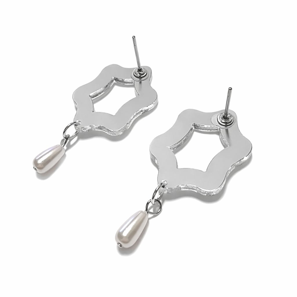 先端には縦長のパールをあしらい、モダンなアクセントをプラス。耳元でしなやかに揺れる動きが、凛とした女性らしさを引き立てます。