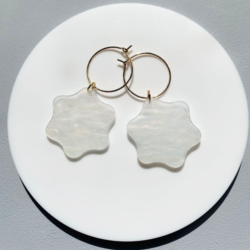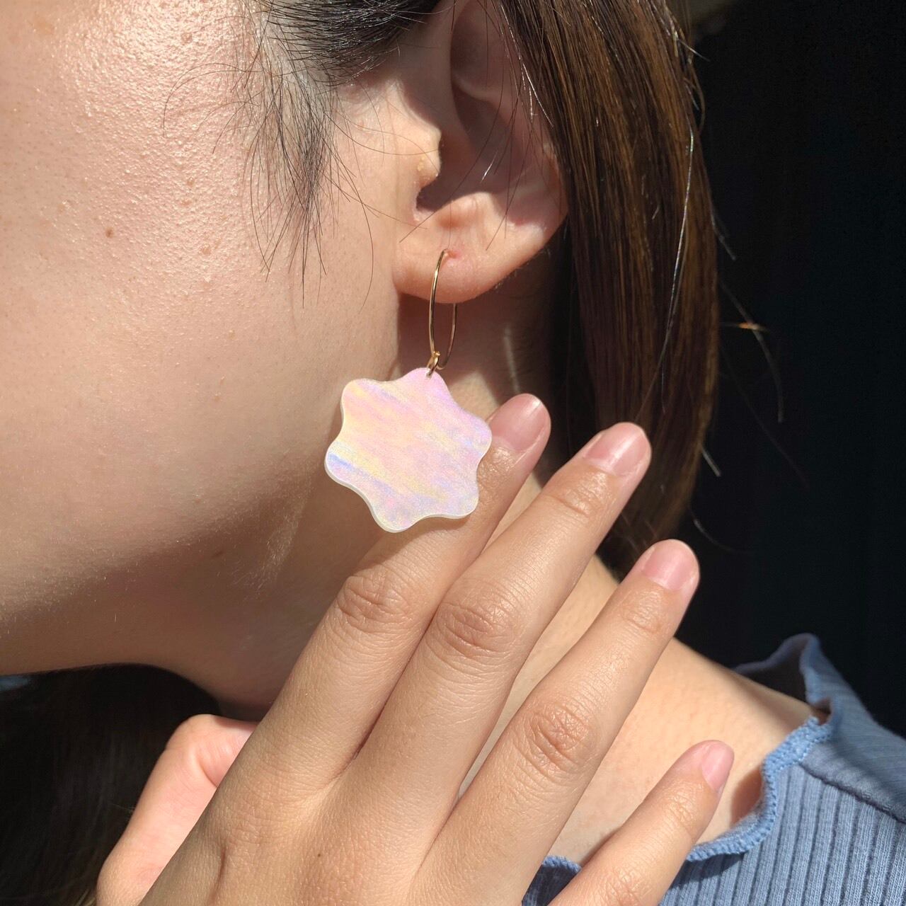 パーツ部分にはオーロラカラーの特殊なアクリルを使用しており、半透明のパーツが透けてとても夏らしく爽やかなアクセサリーとなっています。